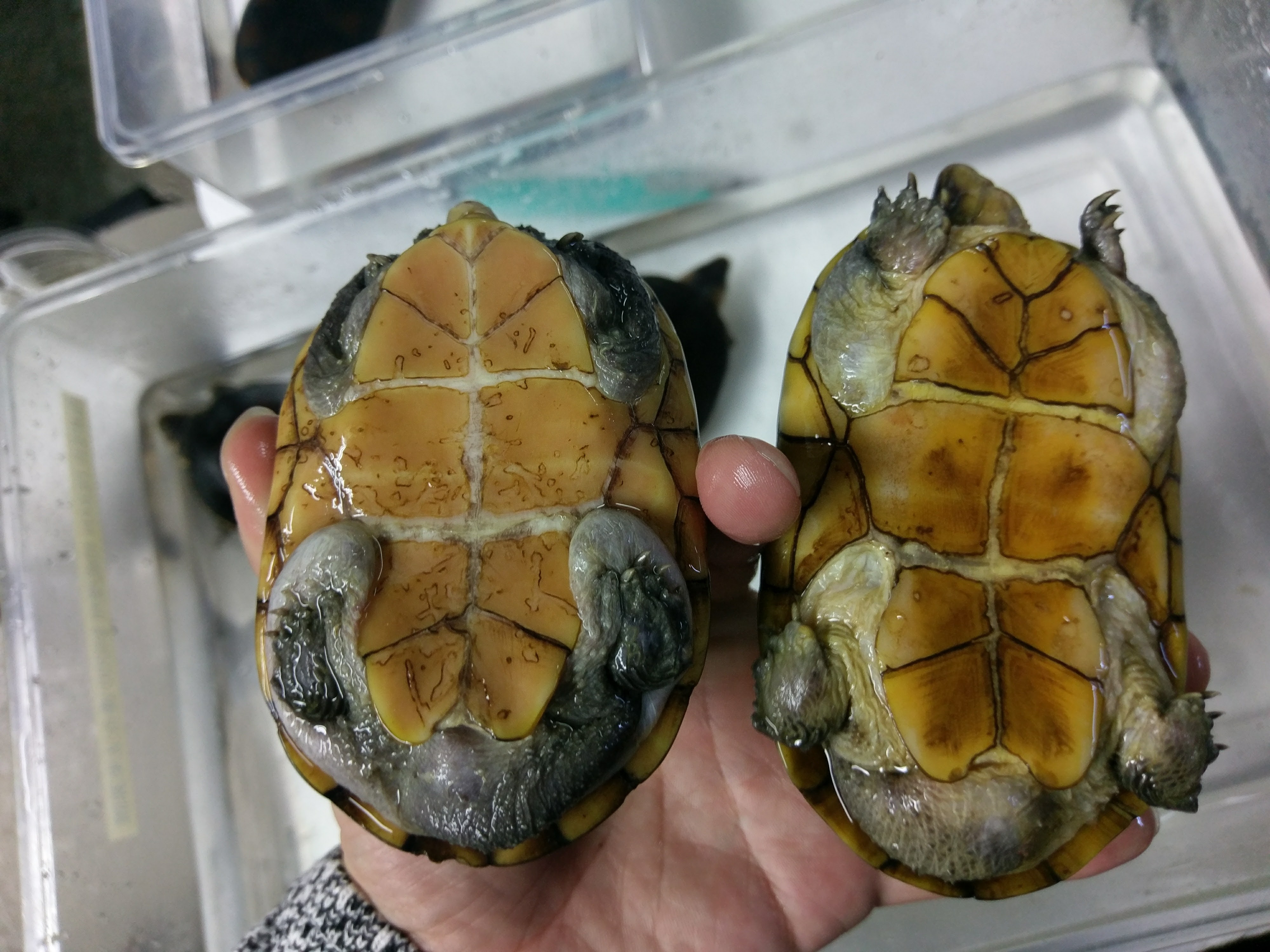 當年有一位對蛋龜認識很深的玩家在店聊天時談及想找窄橋泥龜 Kinosternon angustipon 及大鼻泥龜 Kinosternon dunni(應該還有其他品種的蛋龜,但時間太久遠忘記了),在那個時候對於我來說根本聞所未聞,既然遇上高手指點當然留意一下。直至2016年12月終於在美國找到了這個原生地分佈於中美哥斯達黎加、巴拿馬及尼加拉瓜的窄橋泥龜!原本訂的是4對,最終卻只來了4公3乸,寄錯寄少是常事,大部份有到手就好了。分享一下當年照片。
