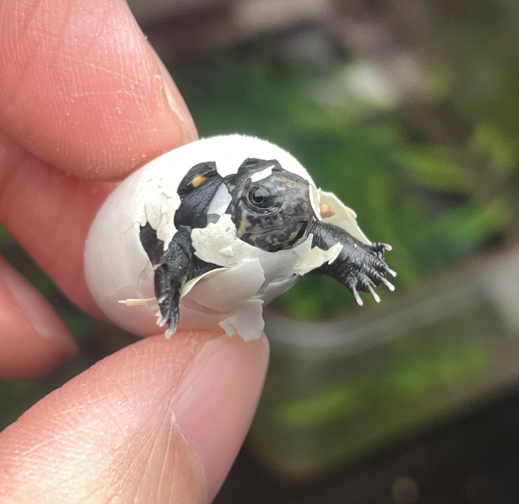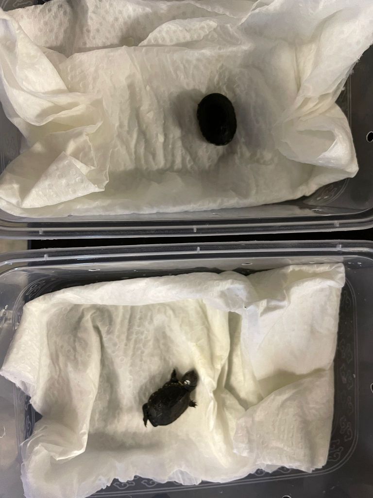 我們第一隻CB26的小龜在2026年2月21日出世了!翌日2026年2月22日同窩的另外兩隻小龜也相繼順利破殼出生!看回記錄這是2025年12月15日佛羅里達泥龜(Kinosternon steindachneri)繁殖組產下的蛋,一窩四粒蛋,三粒授精,我們沒有做變溫孵化,同一溫度直孵,用了約68天3隻小龜成功孵出。